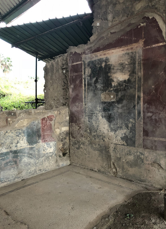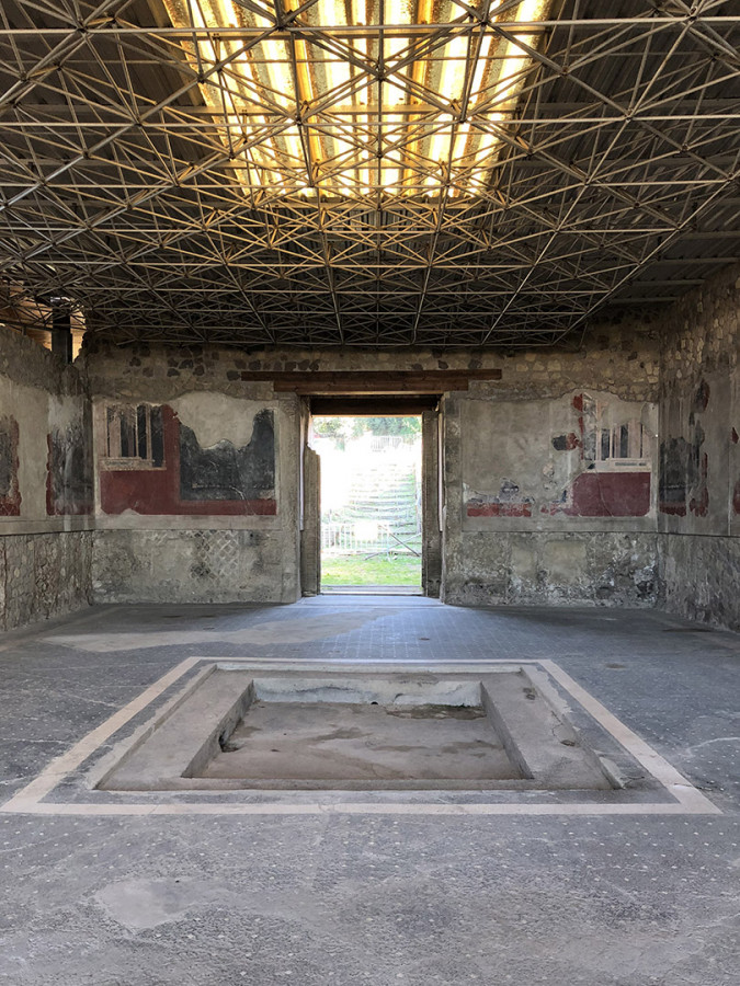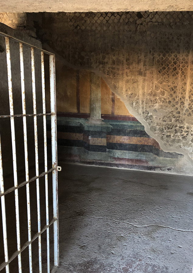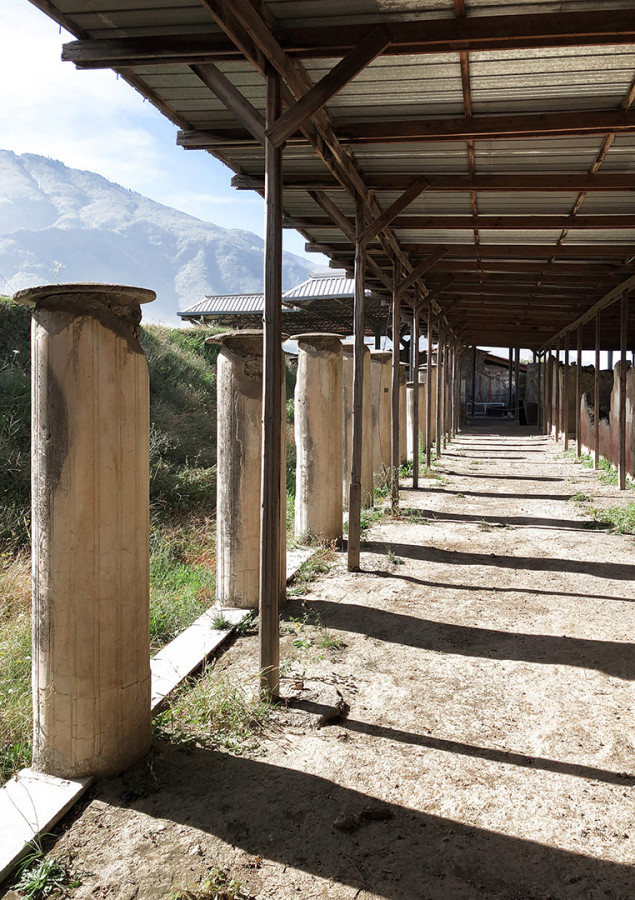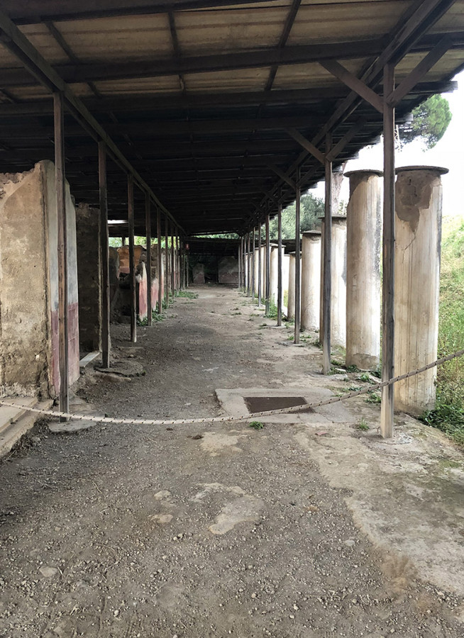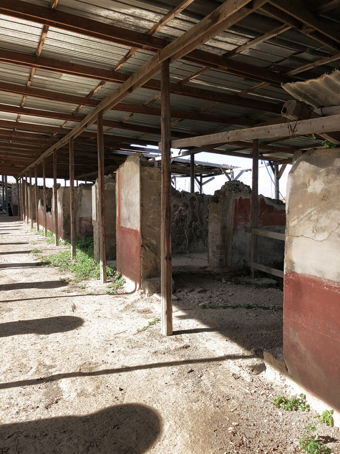 Sulla collina di Varano, che domina l’attuale Castellammare di Stabia, si succedevano fino all’eruzione de Vesuvio nel 79 d.c. le lussuose ville estive del patriziato imperiale. Sul ciglio occidentale del promontorio spiccava Villa Arianna, la più antica di tutta l’area. Vista dal mare, la base della dimora offriva un gioco prospettico accuratamente studiato per adattarsi alla conformazione della falesia: una lunga teoria di terrazze con pergolati, giardini e ninfei digradanti, disposti su sei livelli lungo il percorso che conduceva all’approdo privato.