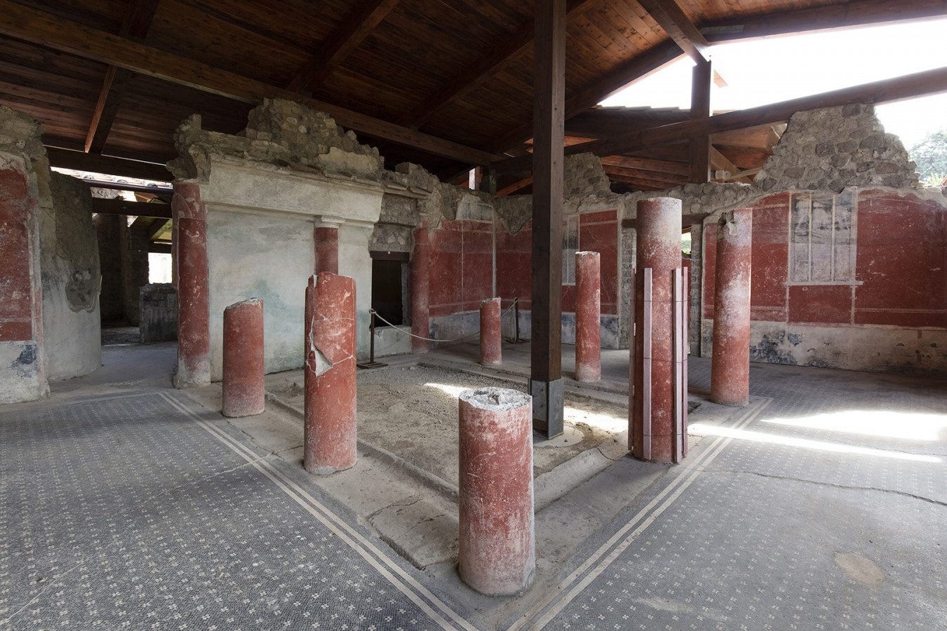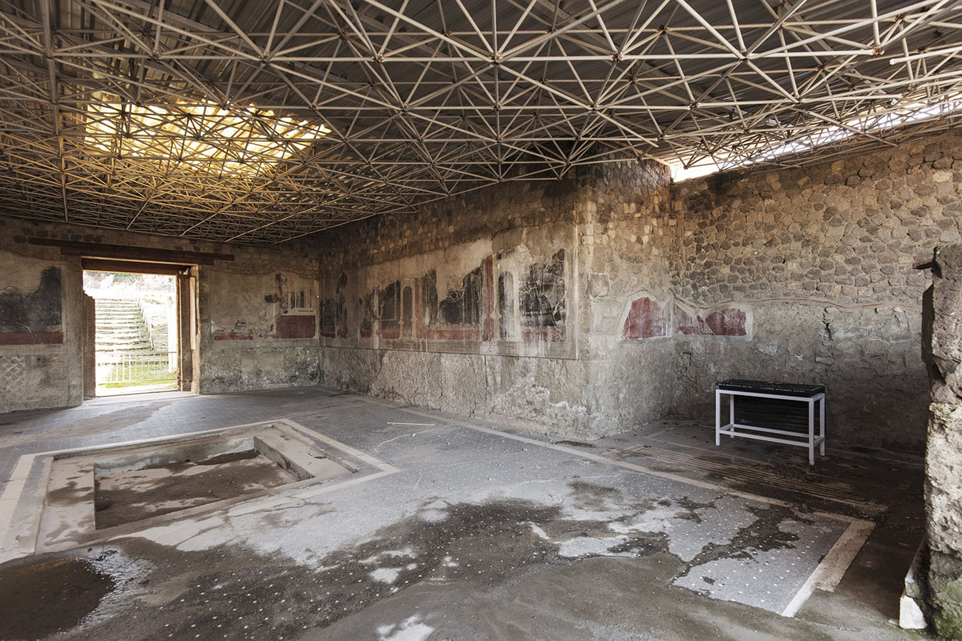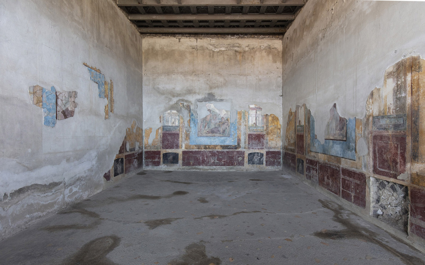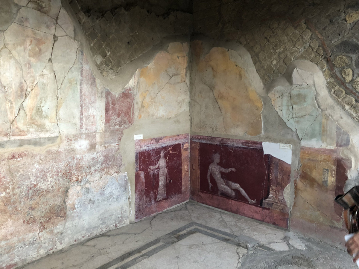Sulla collina di Varano, che domina l’attuale Castellammare di Stabia, si succedevano fino all’eruzione de Vesuvio nel 79 d.c. le lussuose ville estive del patriziato imperiale. Sul ciglio occidentale del promontorio spiccava Villa Arianna, la più antica di tutta l’area. Vista dal mare, la base della dimora offriva un gioco prospettico accuratamente studiato per adattarsi alla conformazione della falesia: una lunga teoria di terrazze con pergolati, giardini e ninfei digradanti, disposti su sei livelli lungo il percorso che conduceva all’approdo privato.