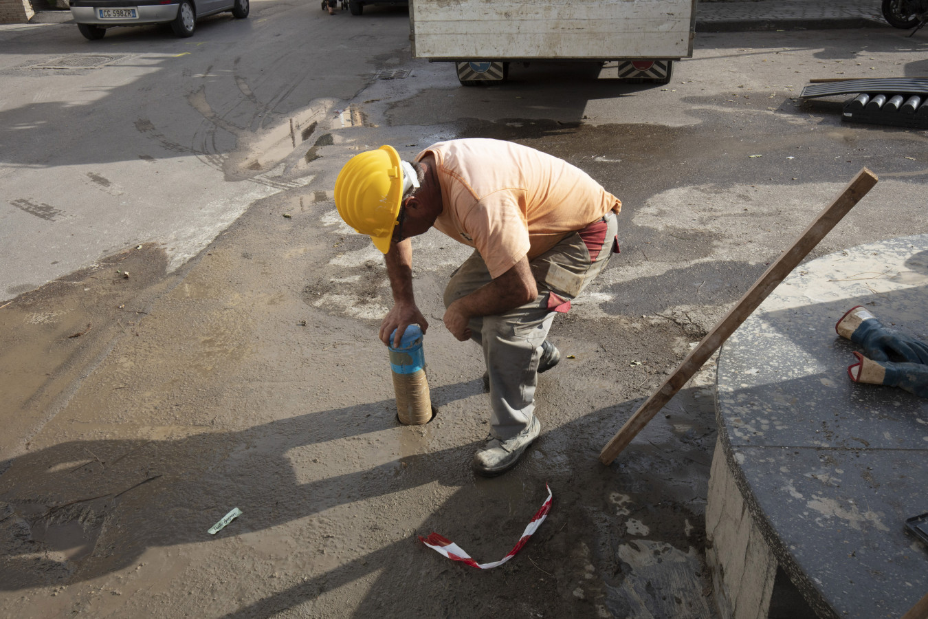 In detail, below the road surface (consisting of asphalt and road bed), which is about 1.2 m deep, there is a series of volcanoclastic layers that were augmented by the continuous addition of pyroclastic materials from the various eruptions of Vesuvius. They rest directly on the pumiceous and cineritic materials from the eruption in AD 79. They are about 1.5 m thick, covering a sequence, about 3 m thick, with inhabited areas at the highest level and, at the lowest level, with alluvial and marshy deposits with a considerable amount of travertine. An erosion surface marks the transition to the underlying layer, which is about 1.65 m thick and mainly made of sandy and silty deposits rich in carbon elements, organic substances, and fragments of bivalve shells, caused by coastal sedimentation.