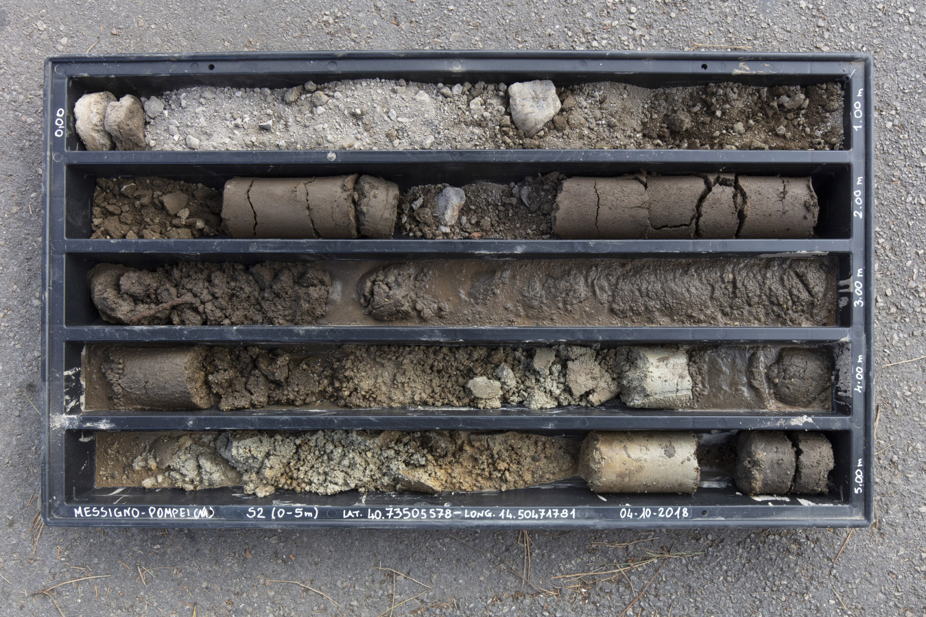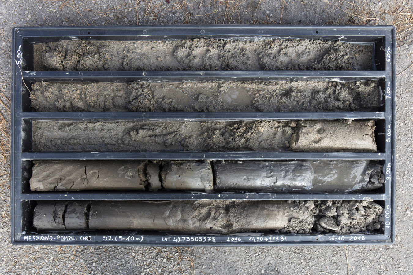 The 0008 core sampling was conducted near the coastal sand dune bank of Messigno, the innermost and most ancient in the Sarno alluvial plain, reaching a depth of 10 m below ground level.