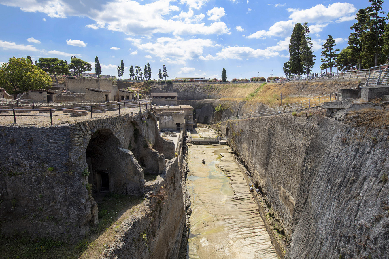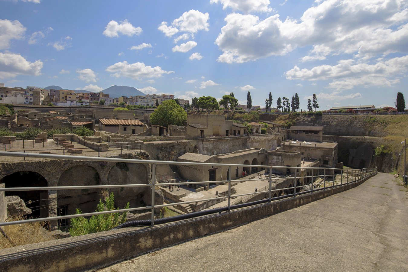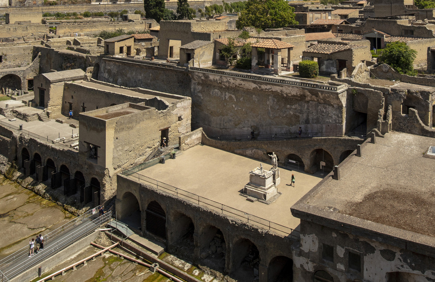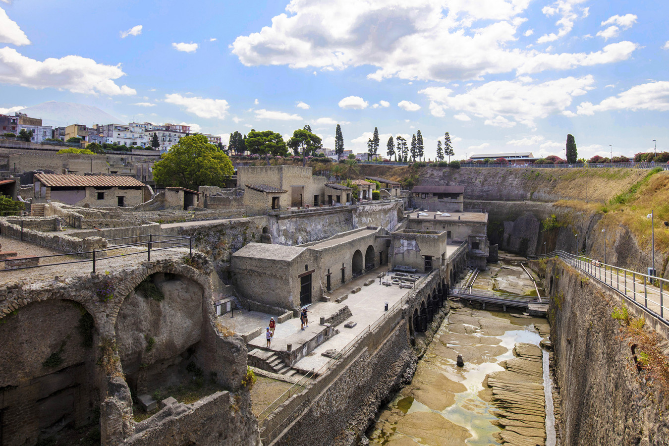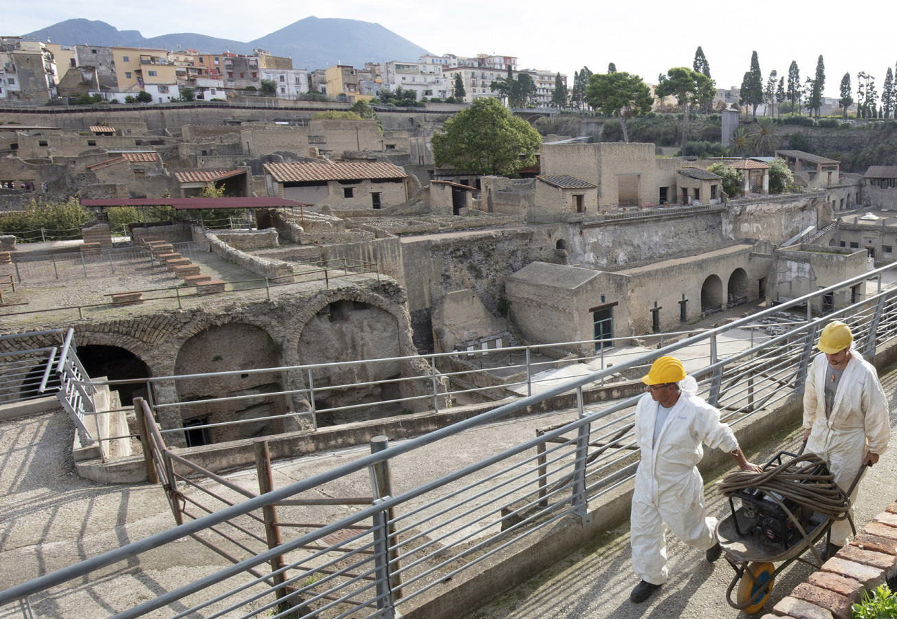Founded during the Samnite period, Herculaneum was one of the circum-Vesuvian cities buried by the great eruption of Vesuvius in AD 79. This was the area hit by its most violent and sudden phenomena (pyroclastic flows mostly at high temperatures) and where it left its thickest deposits (up to 25 m).