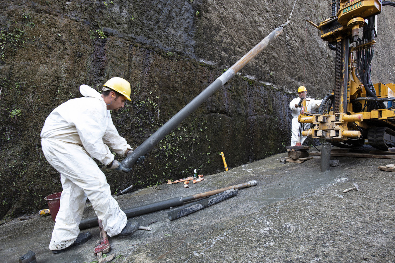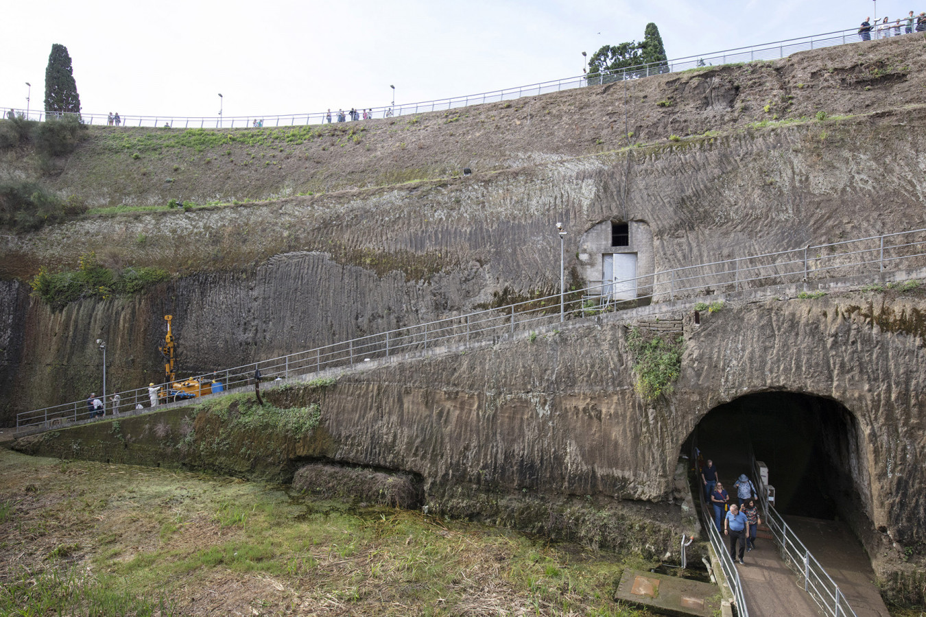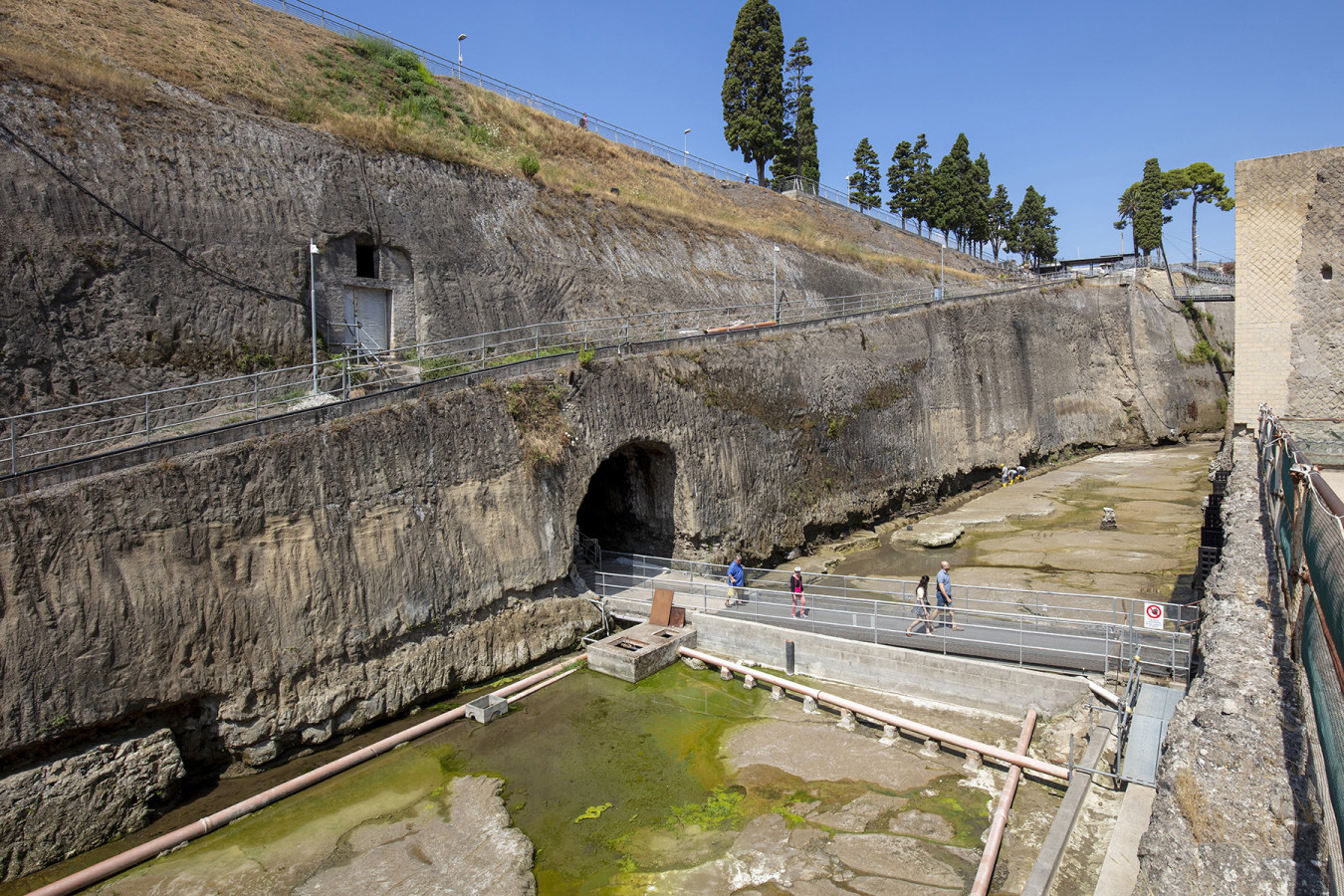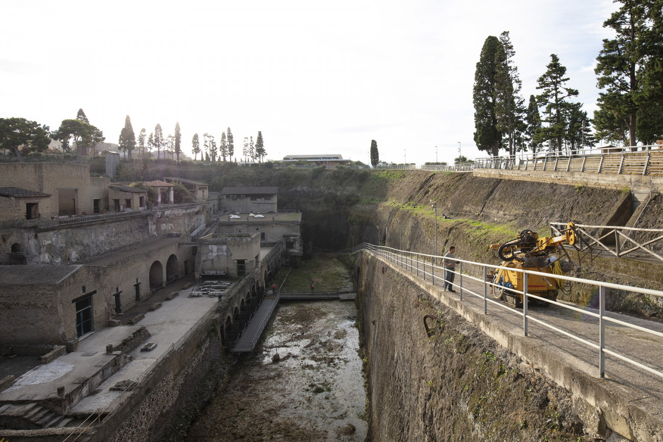 The 0015 core sampling site is in the archaeological area of the Herculaneum excavations, on the ramp that goes down to the pumping plant and to the coastal tuff platform on which the ancient beach had formed. Straight cuts and grooves on this platform have been identified as traces of ancient quarrying activities for the extraction of blocks of tuff used for building the city. Where it has been uncovered by archaeological excavations, the tuffaceous platform, which was once out of the water, is now about 6.5 m below sea level due to the subsidence of the ground caused by volcanic-tectonic phenomena. A pumping system removes the groundwater, which would otherwise fill the area.
